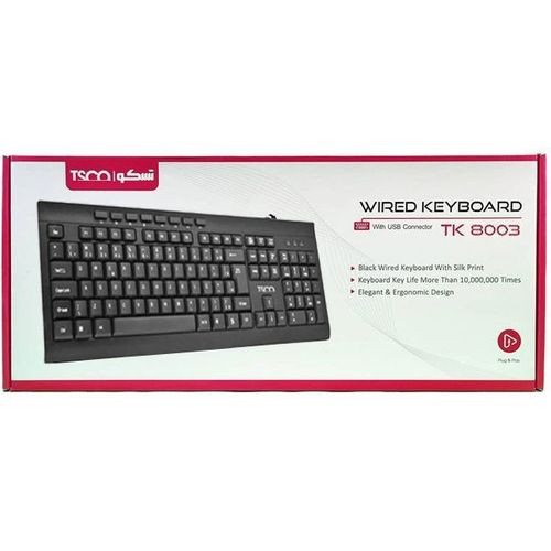 کیبورد تسکو مدل TK 8003 از طریق پورت USB به کامپیوتر شما متصل می شود و نیاز به نصب هیچگونه نرم افزاری ندارد.